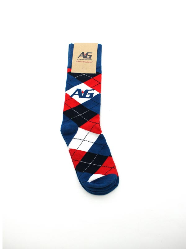 What makes our custom crew socks different from others is that every pair of socks is fully knitted. Unlike printed socks where the colors fade quickly and dreaded white lines appear when they’re put on, our custom knit socks maintain color and design integrity making them the perfect socks for representing thre A-G logo! Also comes with a custom header card!